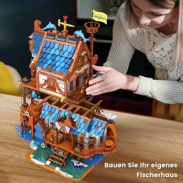 Märchenhaftes Fischerhaus: Dies ist ein mittelalterliches Fischerhaus, das in Form von Bausteinen präsentiert wird, kombiniert mit historischen und kulturellen Hintergründen. Dieses Set hat insgesamt 2450 Bausteine. Beim Bauen können die Menschen Spaß zum Anfassen haben und das gemächliche und entspannte Leben in der Märchenwelt spüren.