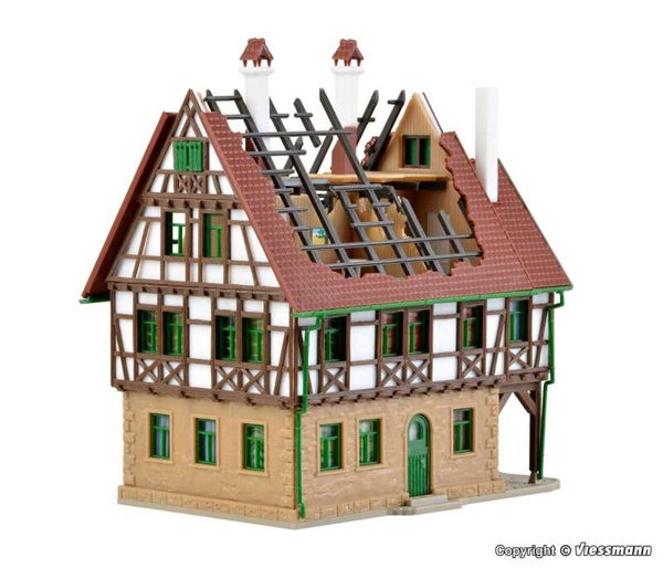 Produktinformationen "N Brennendes Haus" Dieses Gebäude mit ausgebranntem Dachstuhl kann mit der beiliegenden Farbtablette individuell gealtert werden. Mit den Rauchgeneratoren aus dem Vollmer Sortiment, z. B. Art. 44113, und einem passenden Rauchdestillat erzeugen Sie den entsprechenden Rauch. Maße: L 10 x B 7 x H 10,5 cm.